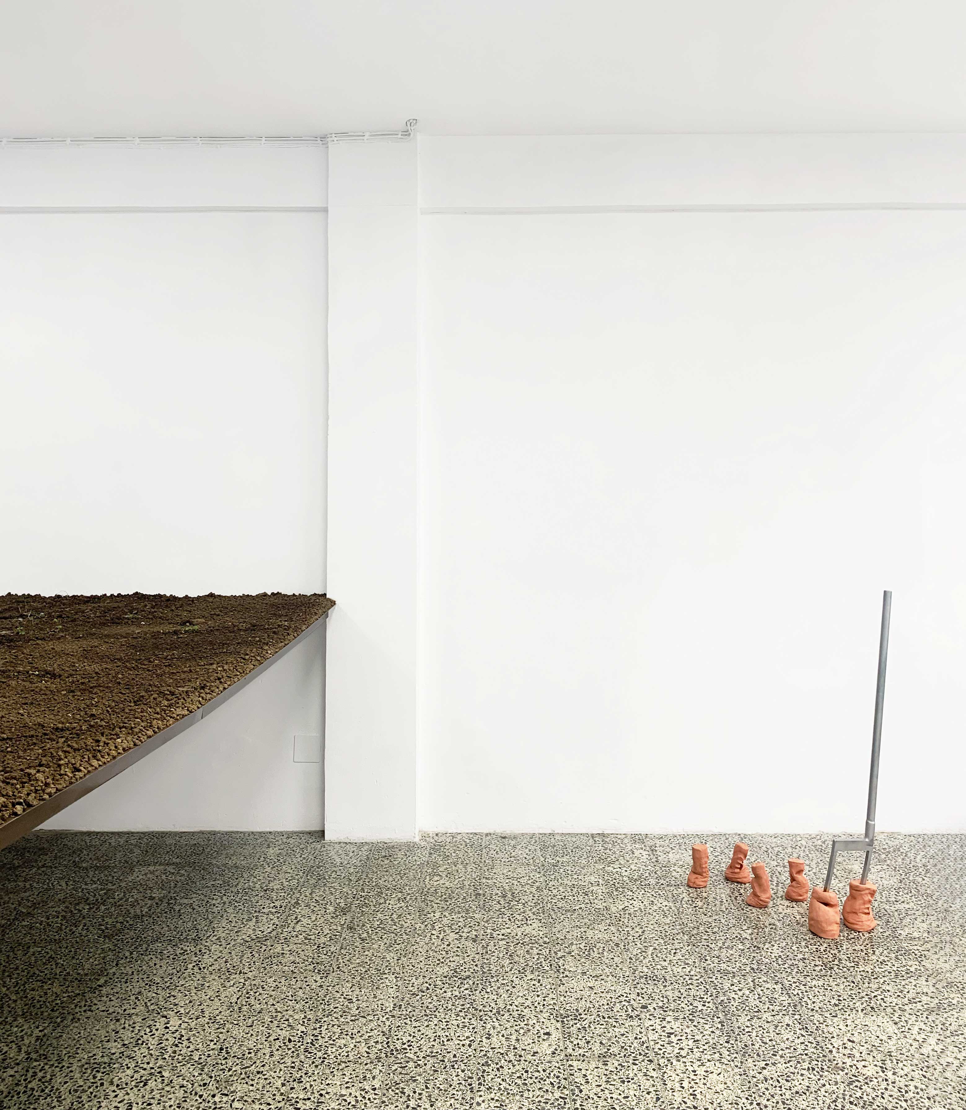 This same exercise runs through Irati’s proposal: to make another body emerge from the ground, to lift it and endow it with resistance. Irati revisits this practice to consider how elements possess qualities that only become possible under certain situations or physical positions.