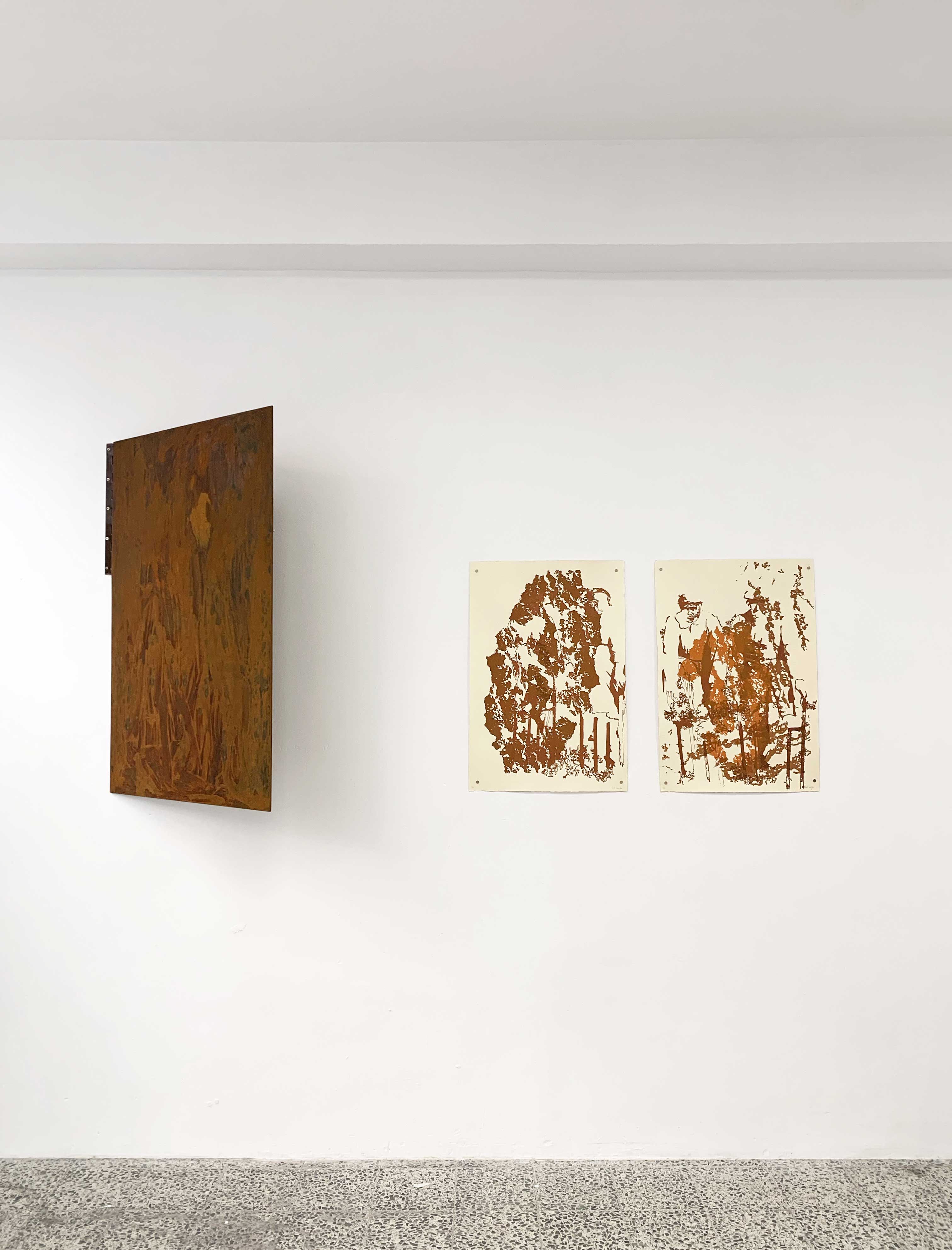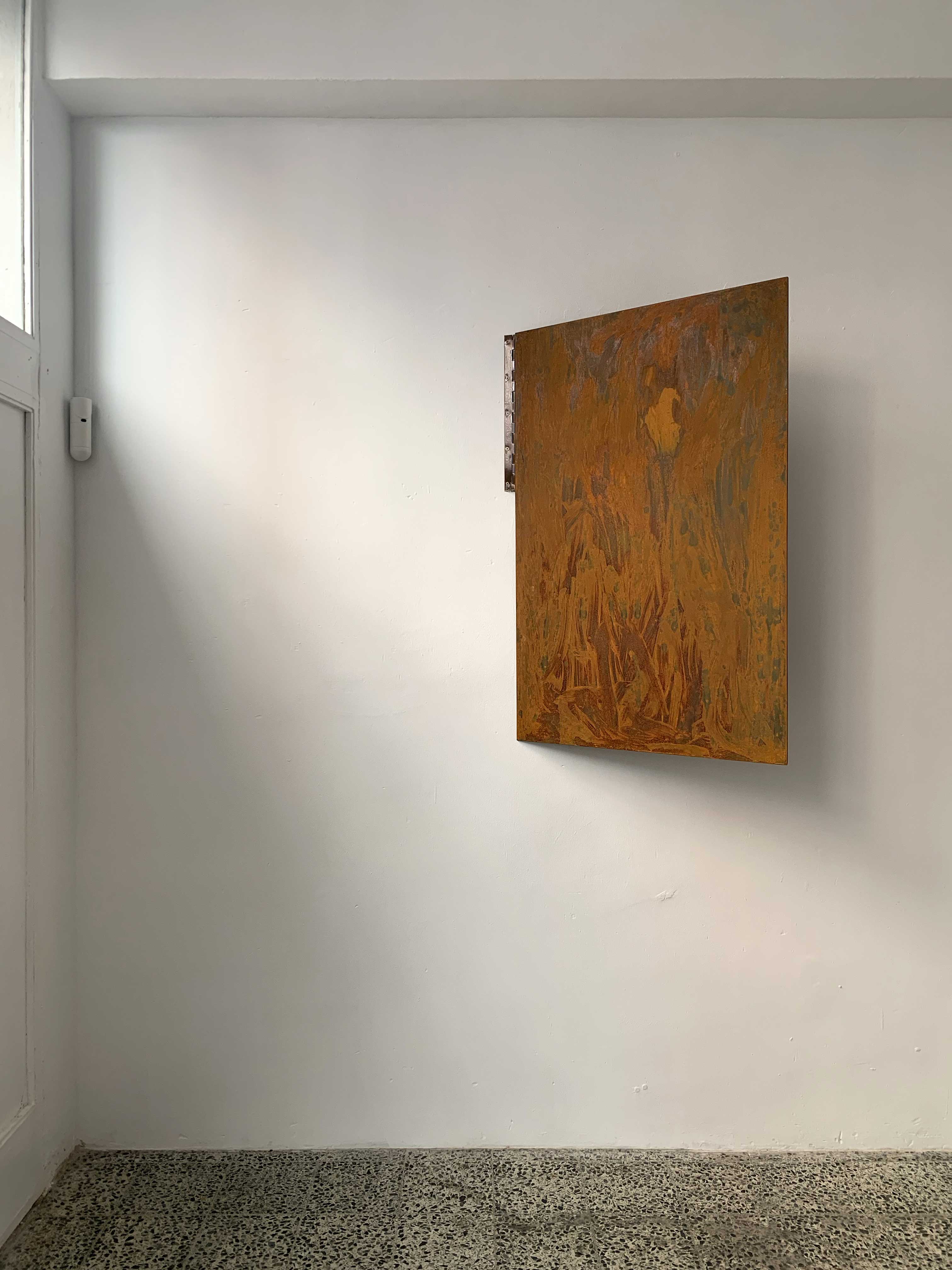 Ataria, 2026. Painted iron and acid. 84 × 120 cm.