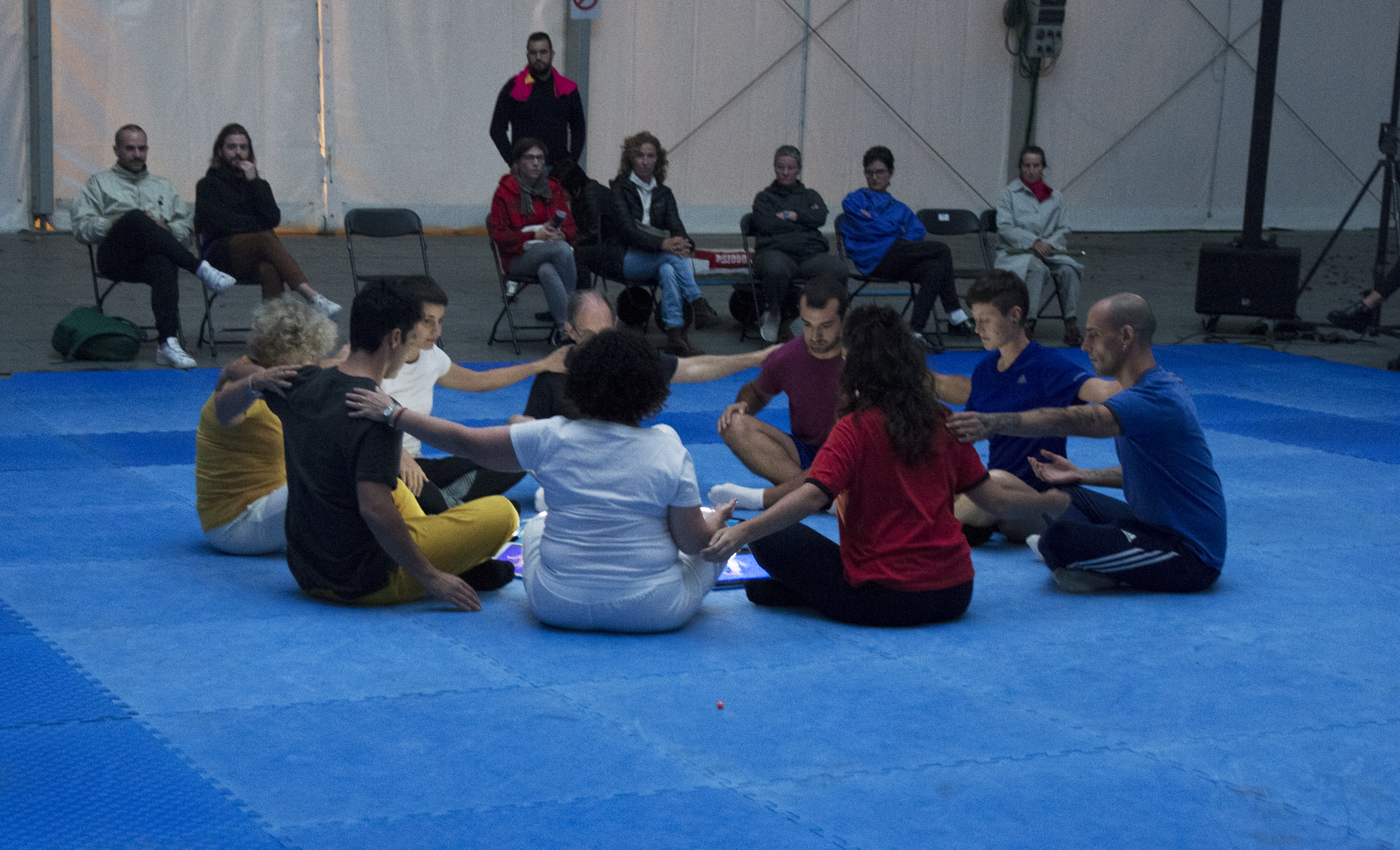 Beste gorputz batzuen aurrean kokatzen diren gorputzak, konparatzen direnak eta zalantza horretan definitzen direnak. Muga argiak ez dituzten haragiak bereizten dituen muga hauskorra. Ez dute barrualderik eta kanpoalderik, ezta positibotik eta negatiborik ere. Agerian uzten da niaren fikzioa. Konfrontazioak berekin dakar erorikoan laguntzea. Bata eta bestearen arteko negoziazio bat existitzen da uneoro, etengabeko buruz buruko bat bezala, borroka bat baino gehiago, dantza bat, non garaipenik ez dagoen. Ez dago presentziarik elkarrekikotasunik gabe.